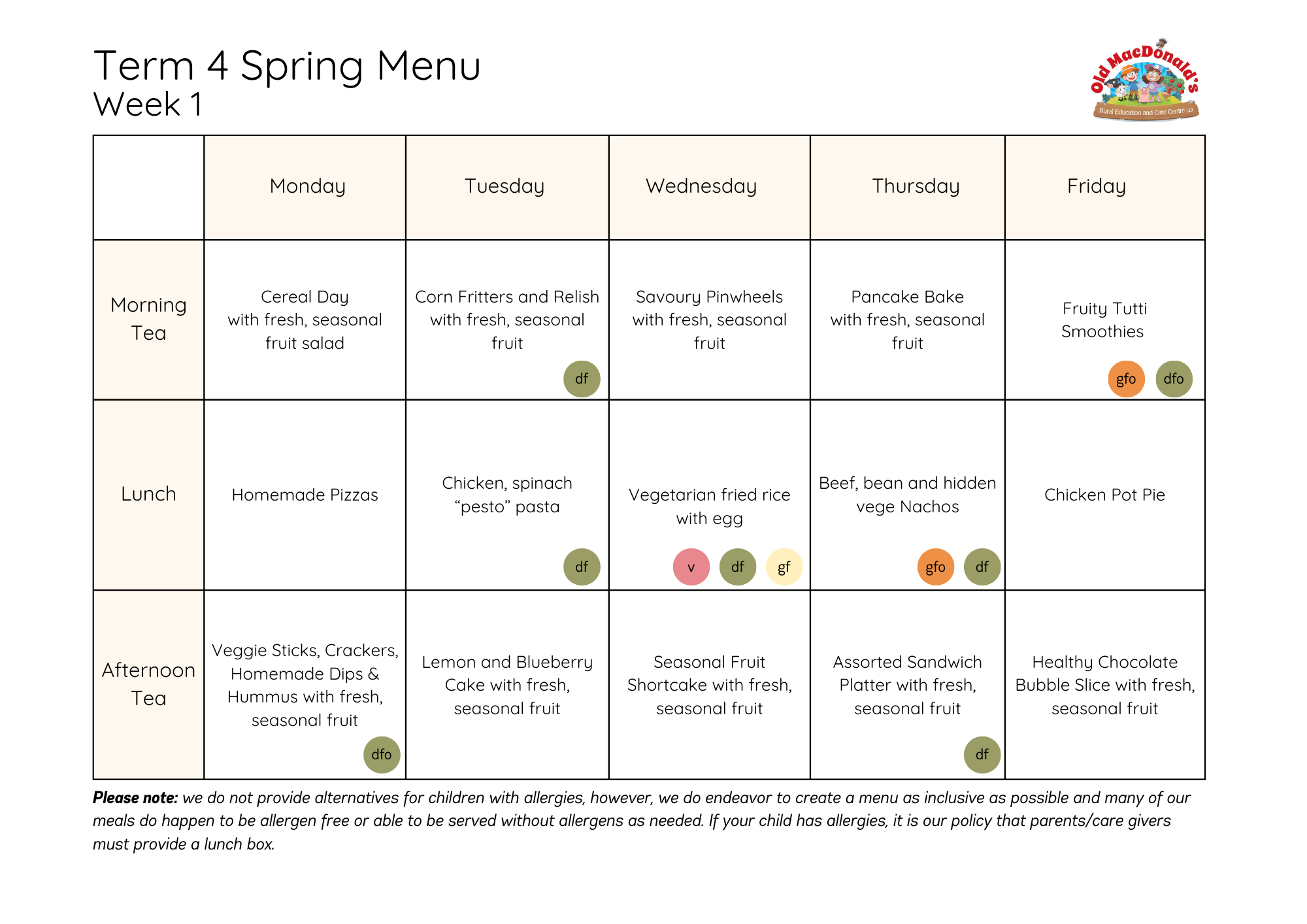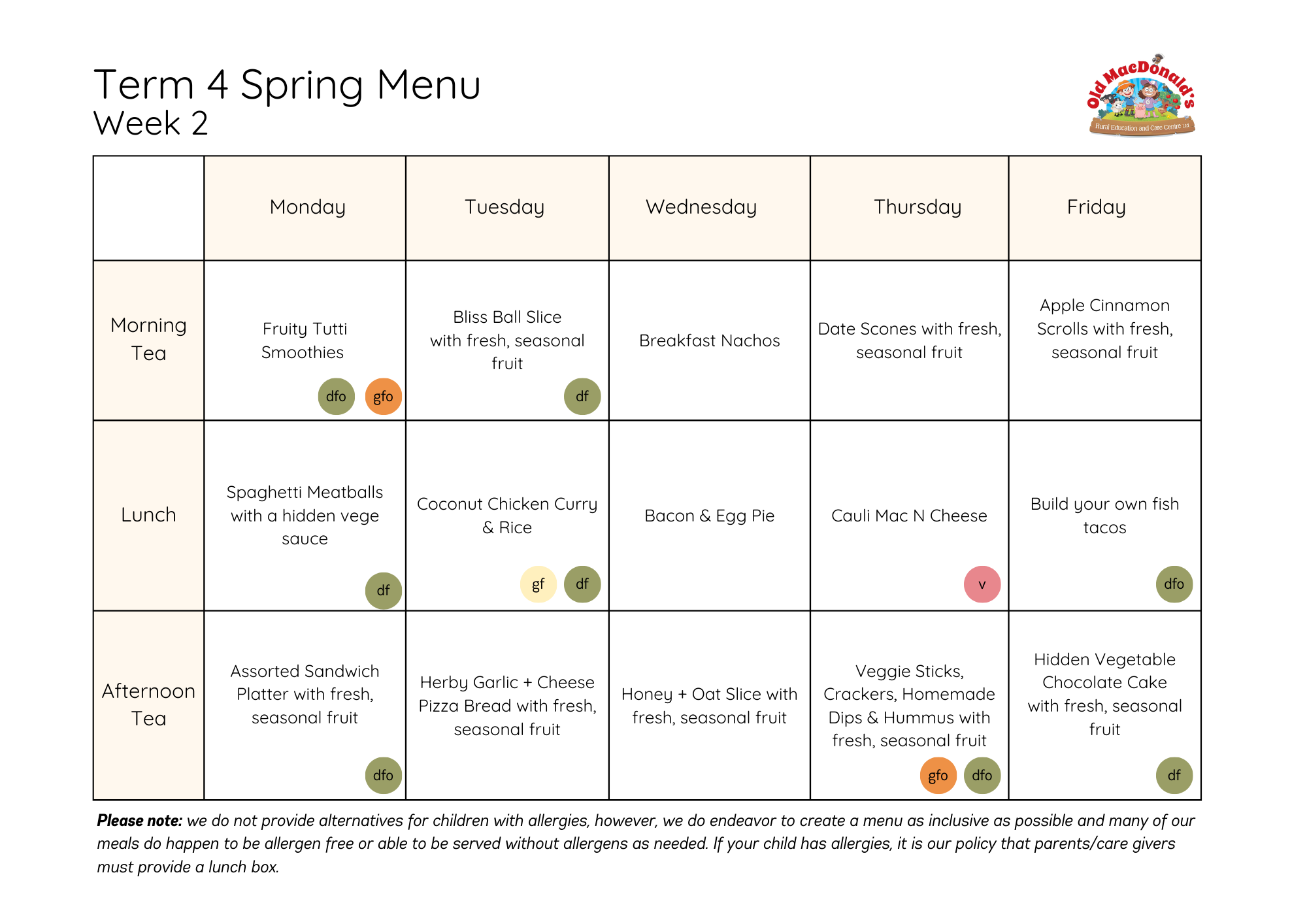 Whaanau with allergy children or dietary preferences are asked to bring a lunch box. We
